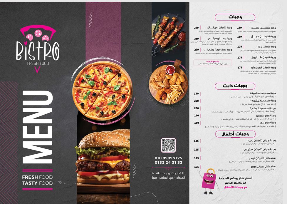 بيسترو بيقولك متشلش هم عندهم منيو كبيير تختار منه اللى يعجبك 😉